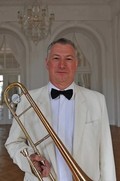 Roger Harvey studied music at Oxford University and gained a teaching diploma at the University of London Institute of Education. Apart from a couple of years as a school music teacher his career was mostly as a trombonist, firstly as a member of the Halle then, on arriving in London to become a member of the Philip Jones Brass Ensemble, freelancing with all the major orchestras and ensembles. From 2000 to 2014 he was Co-Principal Trombone in the BBC Symphony Orchestra. He has been on the staff of the Royal Northern College of Music, Trinity College of Music, Junior Guildhall School of Music and the Royal College of Music. He has also been active as a visiting coach and adjudicator at all of the major conservatoires and has served on numerous other adjudication panels. On Philip Jones's retirement he became manager of the successor ensemble, London Brass. He was responsible for much of the musical direction and the administration of concerts, tours and recordings. As an active arranger he runs his own publication, BrassWorks, in which he makes available his many works for brass ensembles. He has run a brass arranging course at the RCM. Since his retirement as a trombonist he now stays very active by indulging himself with a variety of hobbies: Age has meant that playing squash has become a painful and frustrating sport so he makes do with racketball.